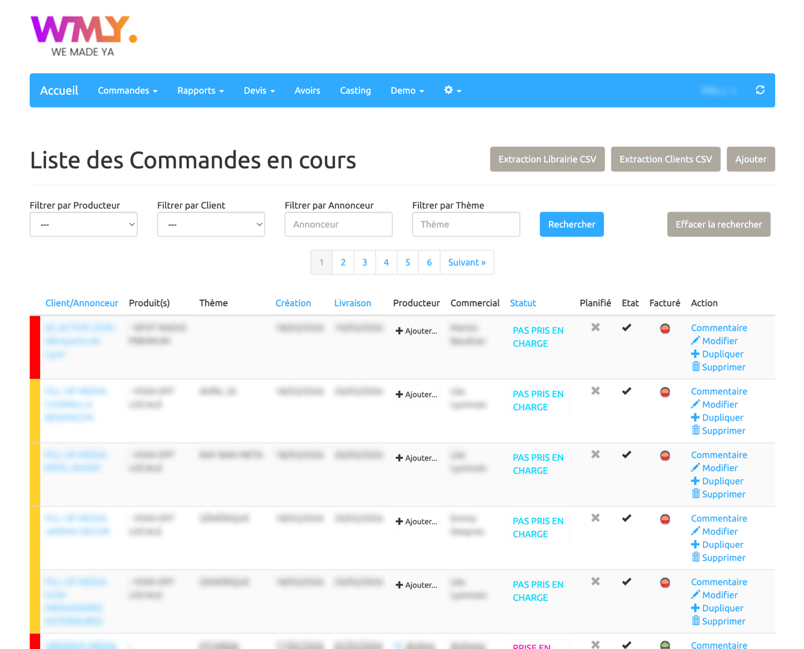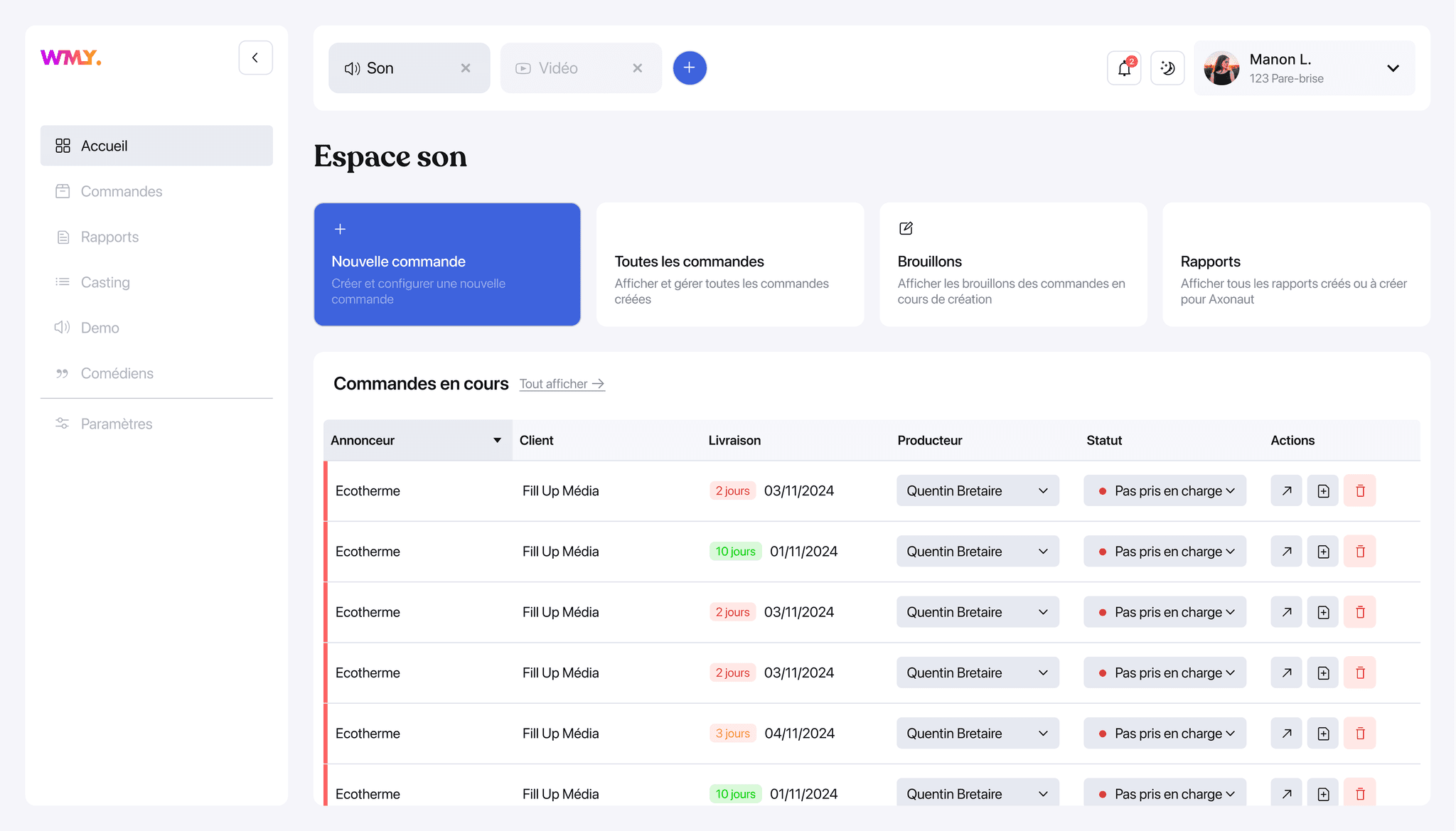 Refonte de la plateforme interne de l’agence We Made Ya, utilisée par les équipes de production pour gérer les commandes clients, les castings de comédiens et les workflows de production audio et vidéo.