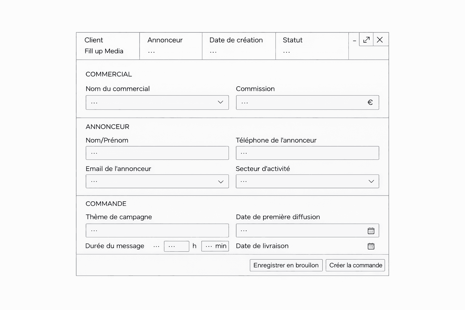 Le projet consistait à simplifier les processus existants, automatiser certaines tâches et concevoir une interface capable de s’adapter aux différents usages des équipes (son, vidéo, marketing), tout en restant immédiatement compréhensible pour les nouveaux arrivants.